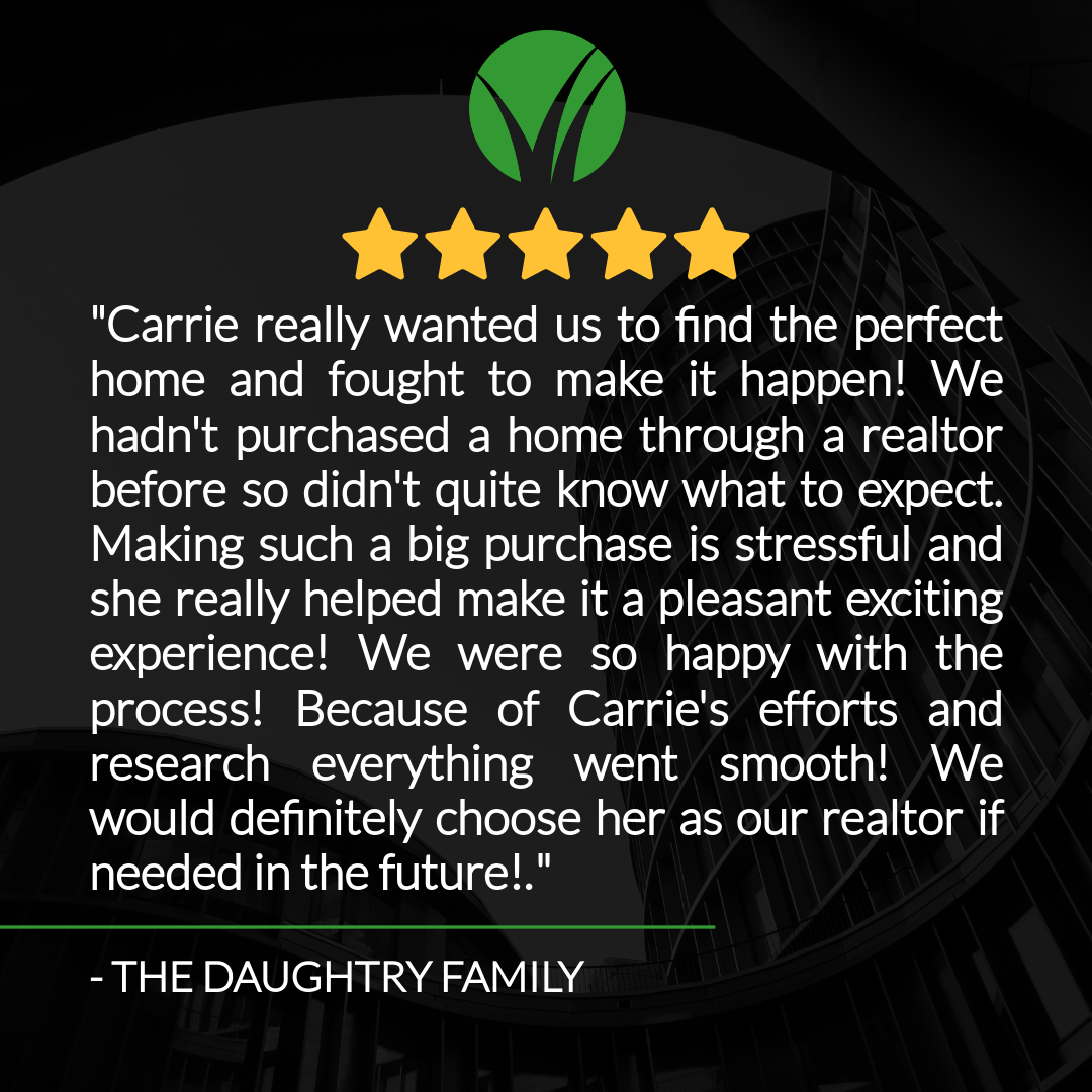 "Caroline (Carrie) really wanted us to find the perfect home and fought to make it happen! We hadn't purchased a home through a realtor before so didn't quite know what to expect. Making such a big purchase is stressful and she really helped make it a pleasant and exciting experience! We were very happy with the process. Because of Carrie's efforts and research, everything went smooth! We would definitely choose her as our realtor if needed in the future!."